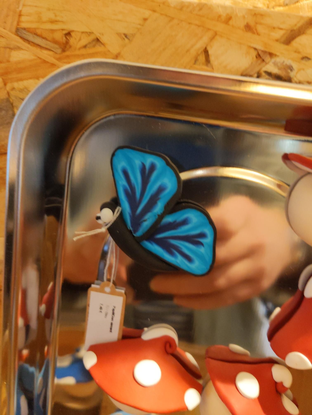 Ajoutez une touche de magie et de couleur à votre réfrigérateur ou à toute autre surface métallique avec notre magnifique papillon Morpho en argile polymère. Mesurant environ 10 cm d'envergure, ce papillon délicatement sculpté à la main est une œuvre d'art artisanale qui apportera une atmosphère enchantée à votre espace.