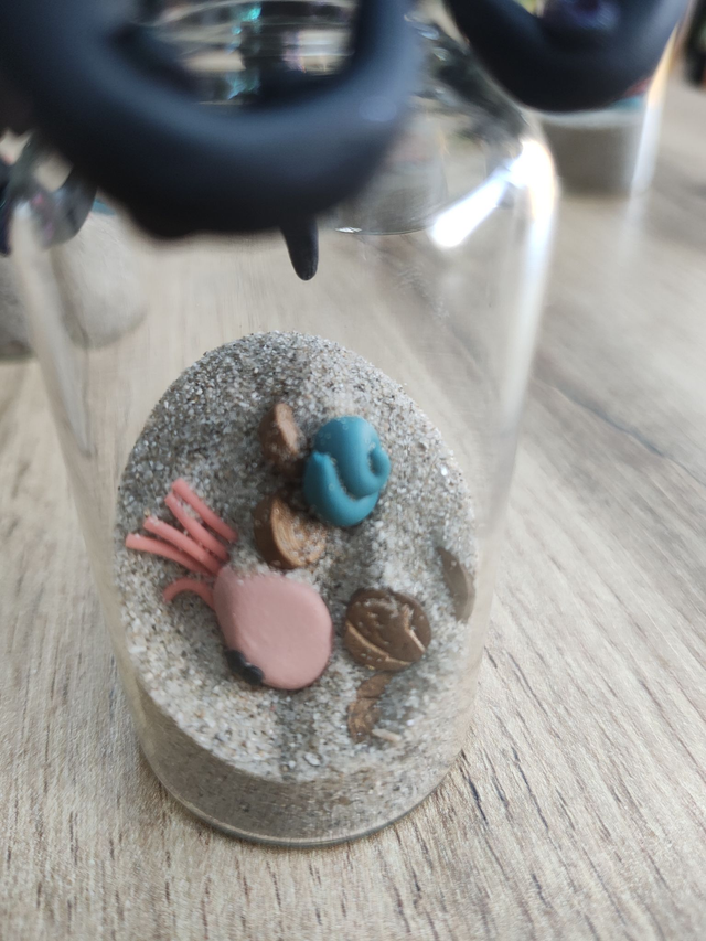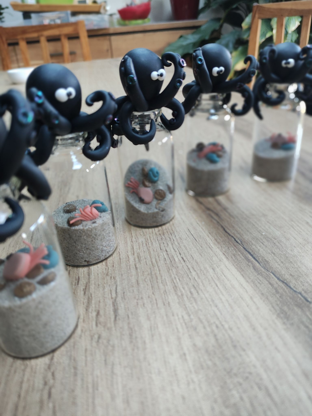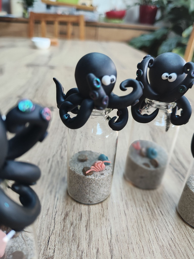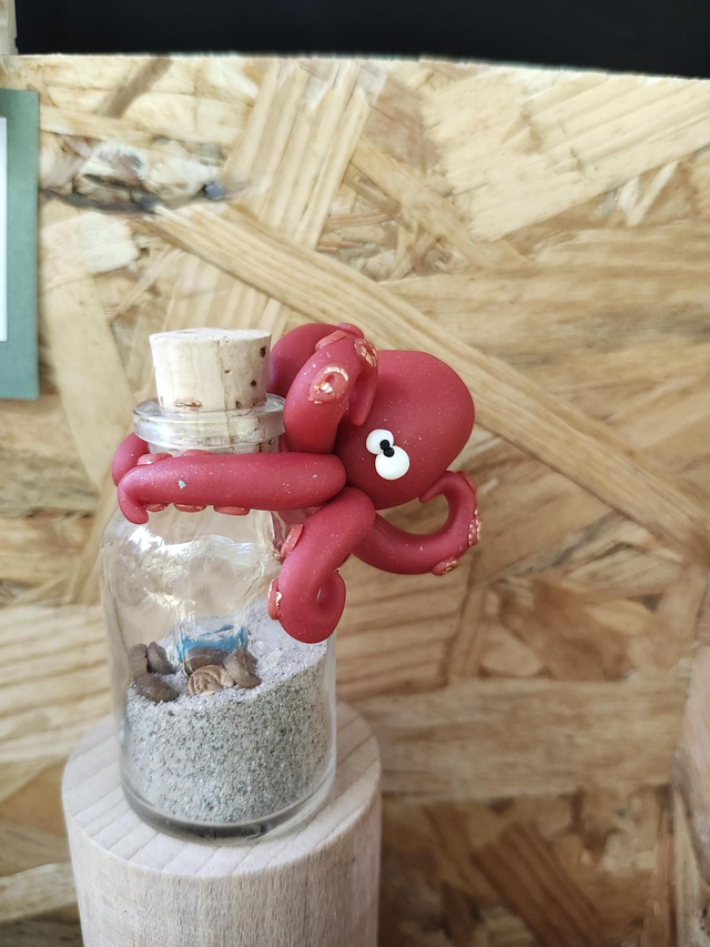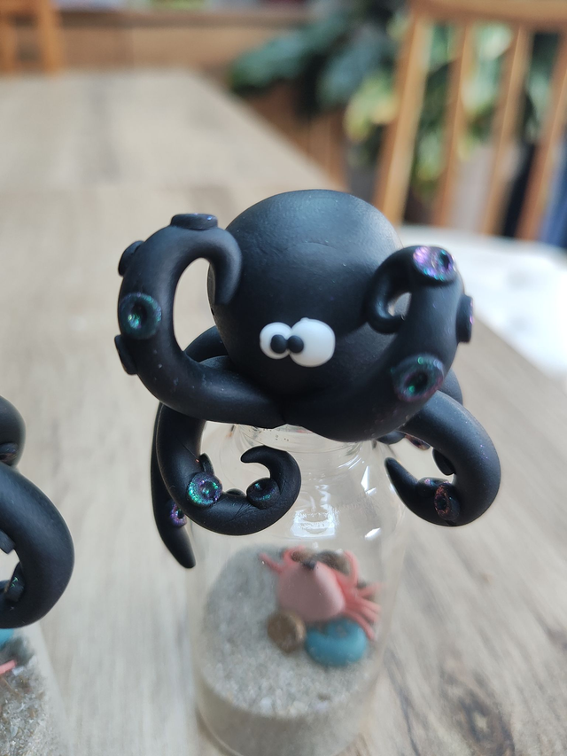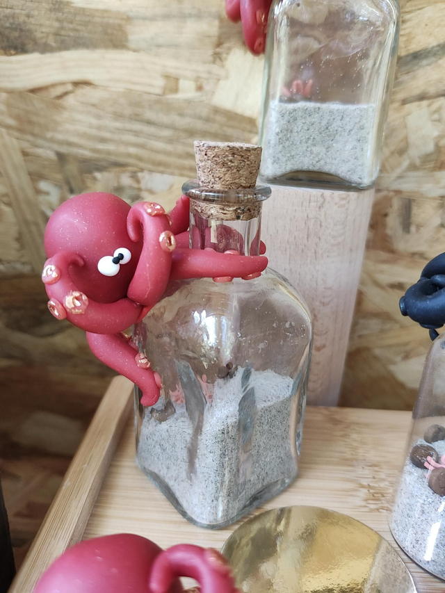 Dans les profondeurs abyssales, un kraken légendaire veille jalousement sur son butin… Cette création unique signée CreAdOu donne vie à un kraken en argile polymère agrippé à son bocal, renfermant un trésor oublié : un crabe curieux, un coquillage mystérieux et des pièces de pirate enfouies dans le sable.